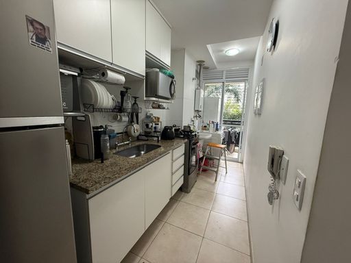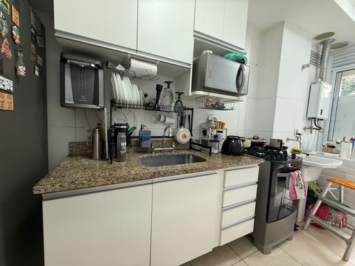 Apartamento 69m² sala com 2 ambientes,banheiro social, cozinha e área de serviço.