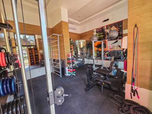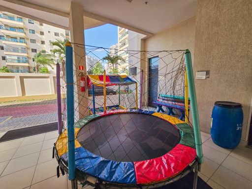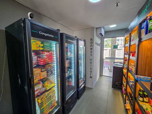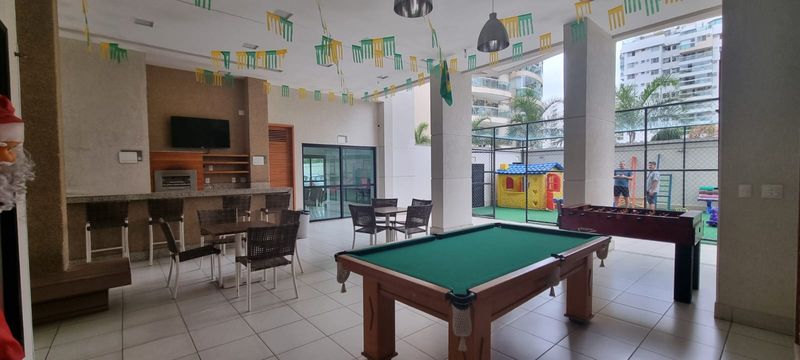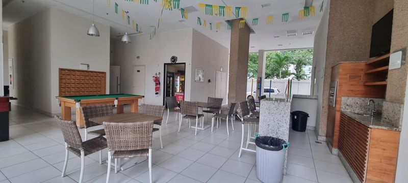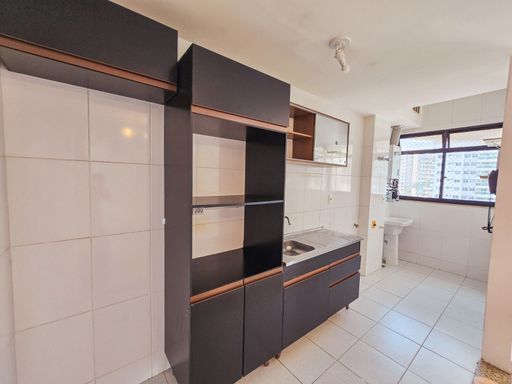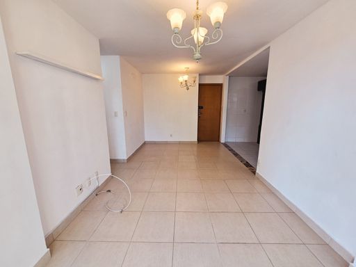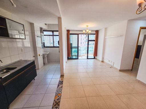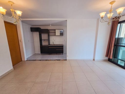 Sala ampla em dois ambientes com varanda gourmet, cozinha em conceito aberto com área de serviço, banheiro social e dois quartos, sendo uma suíte.
