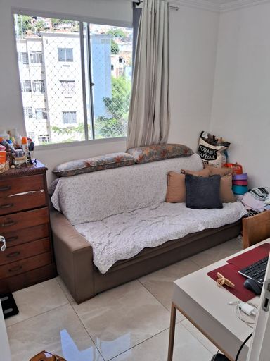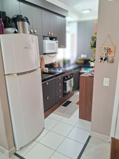 Possui 2 qts com, Cozinha, Banheiro social e Sala em 2 ambientes.