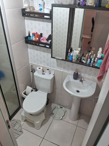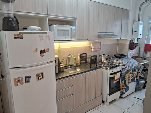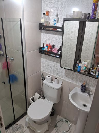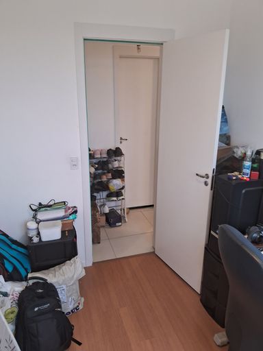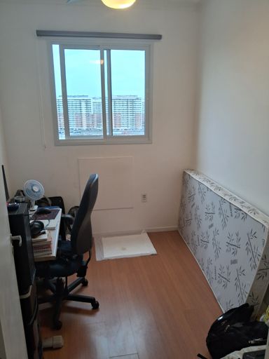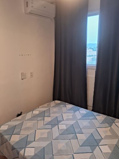 São 2 quartos, sendo um deles com ar-condicionado split, além de banheiro com box blindex.