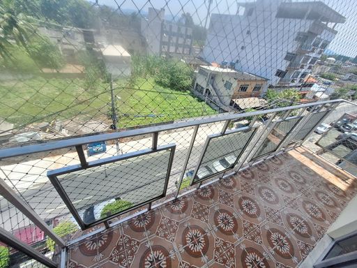 Ampla sala com varanda, 2 quartos amplos, cozinha com área de serviço separada e 1 banheiro social.