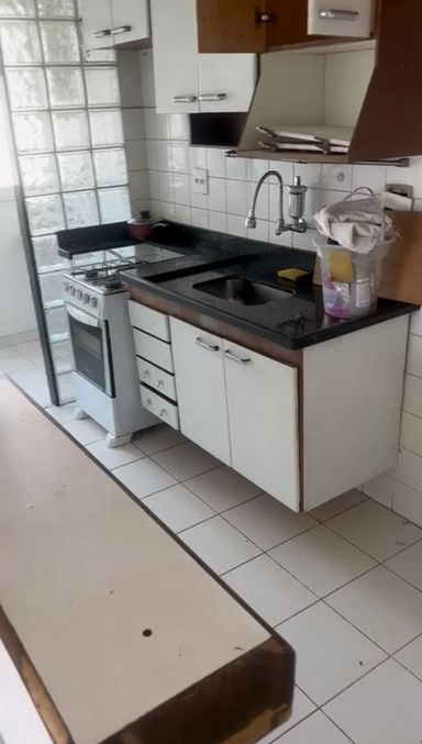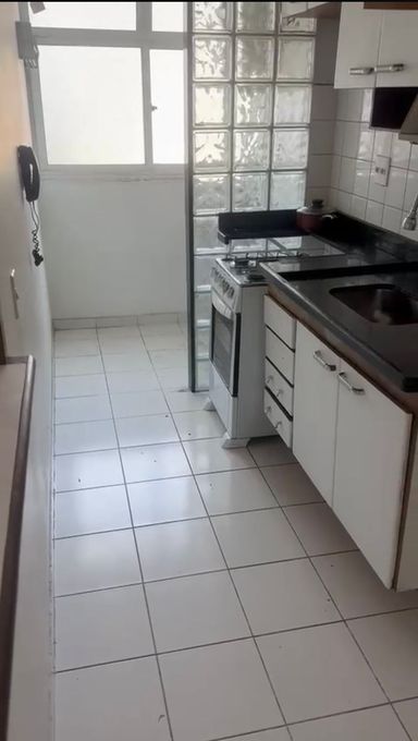 Sala em 2 ambientes, 2 quartos, 1 banheiro, Cozinha funcional integrada com área de serviço.