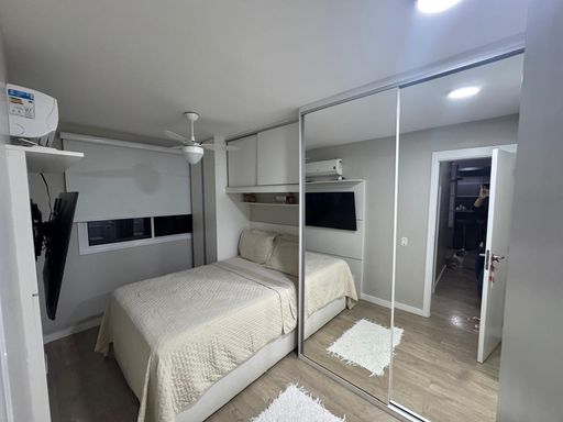 Móveis planejados, sendo 1 suíte moderna, com ar-condicionado e bem iluminada.