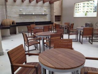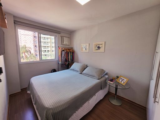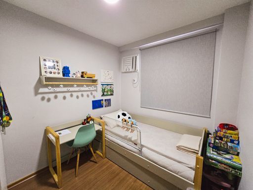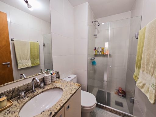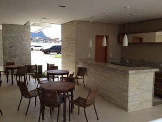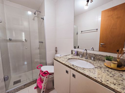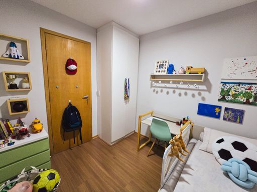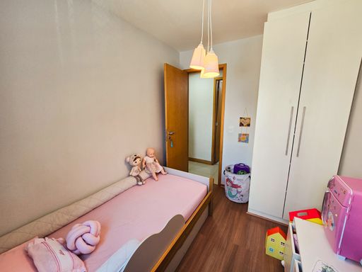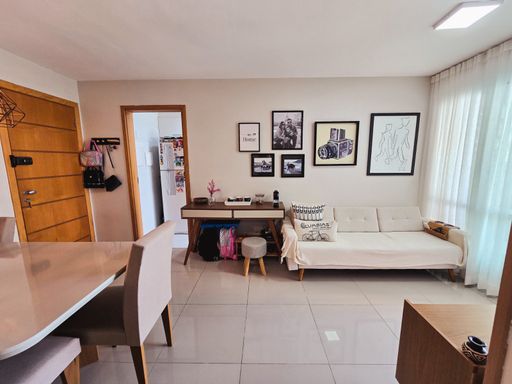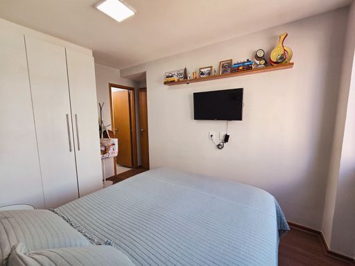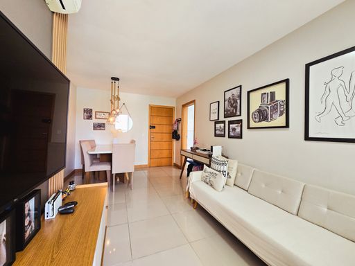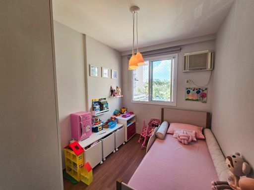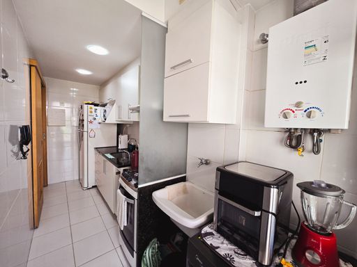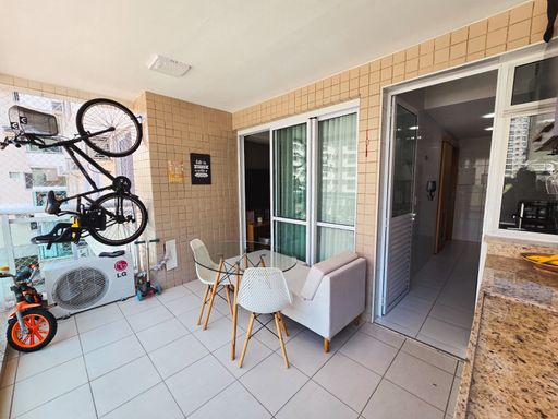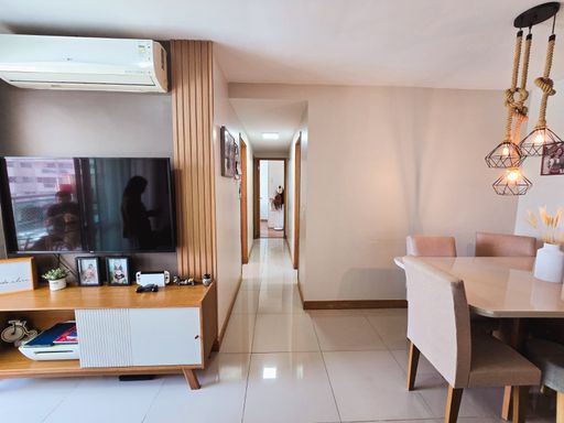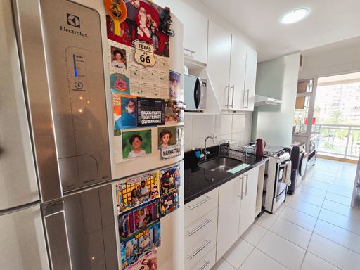 Sala em dois ambientes, varanda gourmet, cozinha com área de serviço, banheiro social, três quartos, sendo uma suíte.