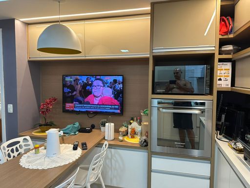 Sala ampla com varandão gourmet, cozinha ampla, banheiro social, 4 quartos e 2 vagas.