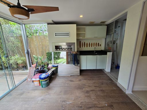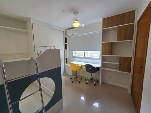 Sala em dois ambientes, varanda integrada, cozinha em conceito aberto, área de serviço, lavabo e três suítes, sendo uma máster e duas canadenses.