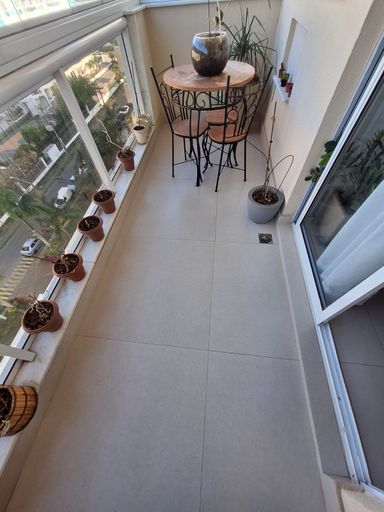 Sala ampla integrada a cozinha americana, Varandão com cortina de vidro,