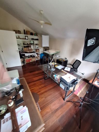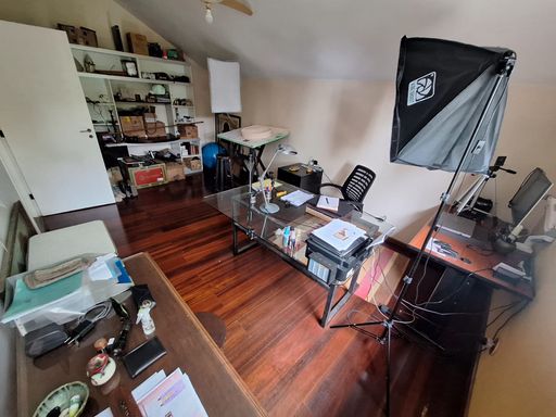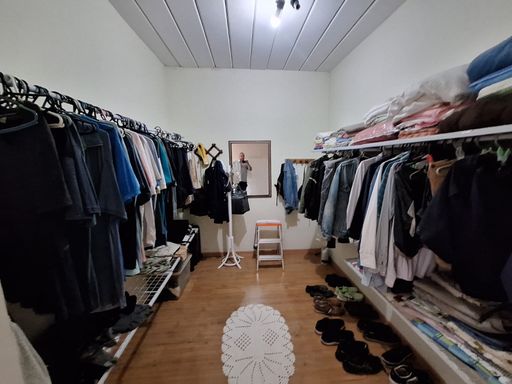 * No segunda andar, ampla suíte com varandão e closet, mais um quarto que é usado como escritório.