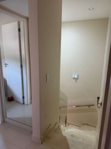 Escada com guarda corpo de blindex e corrimão de inox.