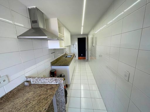 1° Pav.: Sala ampliada em dois ambiente com varanda integrada, dois quartos, sendo uma suíte, banheiro social, cozinha com área de serviço