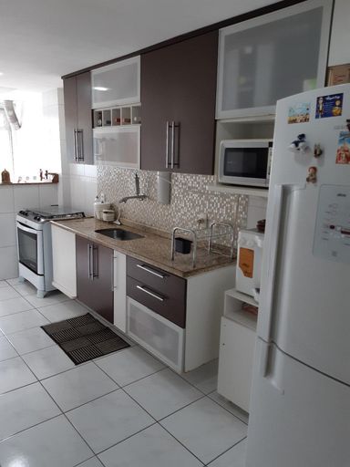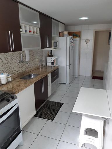 O imóvel tem armários na cozinha e nos quartos, ar condicionado e churrasqueira.