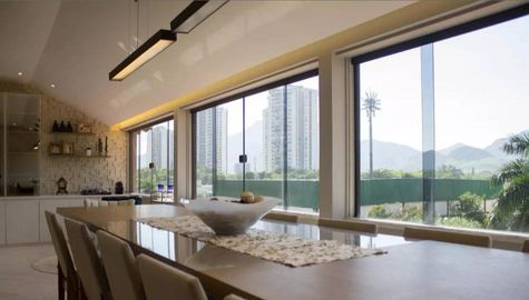 * Sala ampla com mesa de 12 lugares, 04 Quartos, sendo 03 Suites c/ closets (a Master com banheira dupla e escritório integrado), rica em armários, copa-cozinha planejada, área de serviço.
