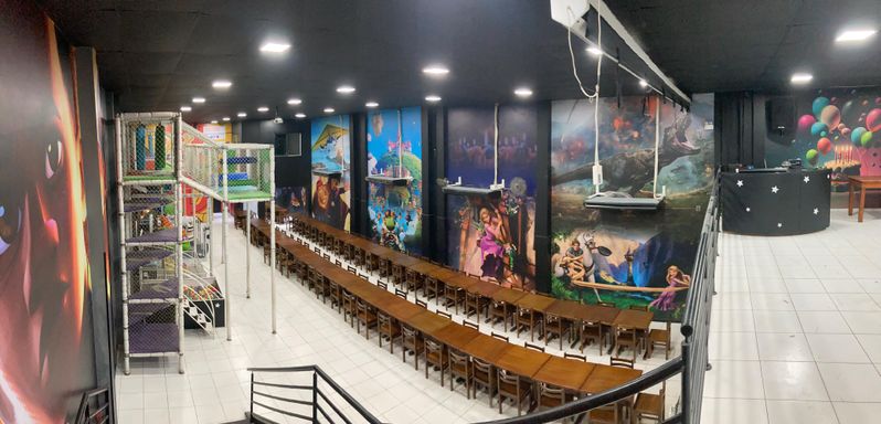 Varanda, Escritório, giral frontal para salão e rua, amplo salão, 7bhs, frandario, cozinha imensa, área de serviço, mezanino fundos, área Vip, rede elétrica industrial, 8 Ar condicionados, 3 caixas d'água de 1500L