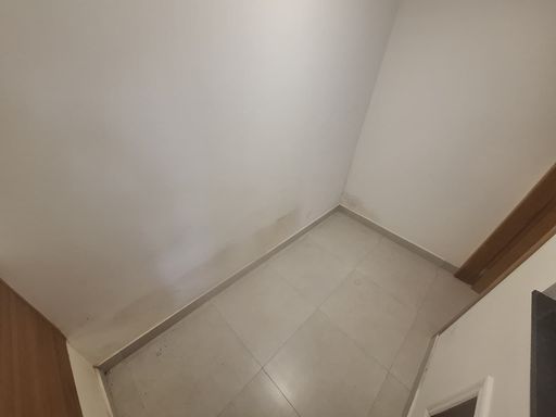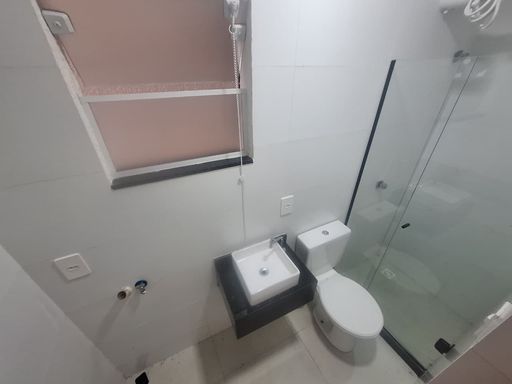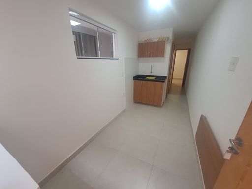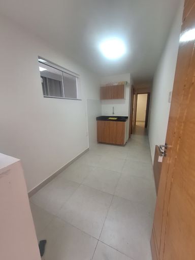 Kitnet / Conjugado : Sala com cozinha integrada, um banheiro e um quarto para solteiro.