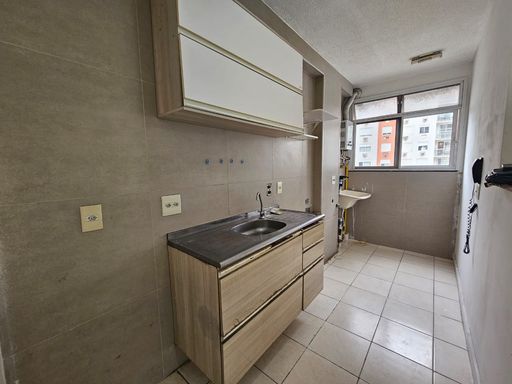Apto. de 2qts com cozinha americana, sala em 2 ambientes, varanda e 1 vaga na escritura.
