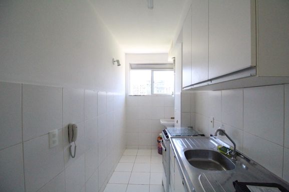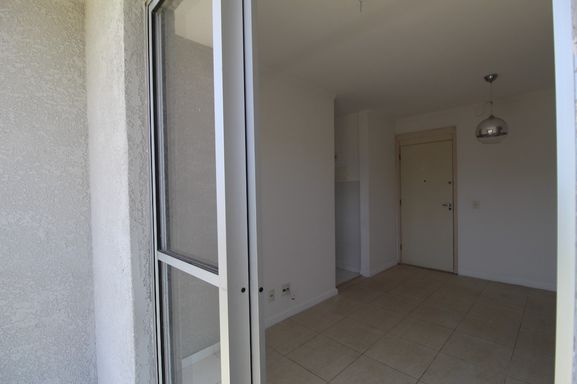 Apartamento com 52m² com Sala em dois ambientes, varanda, cozinha com área de serviço, banheiro e dois quartos.