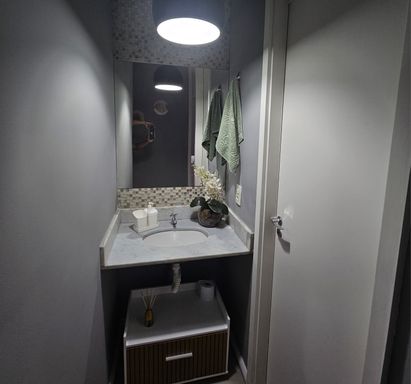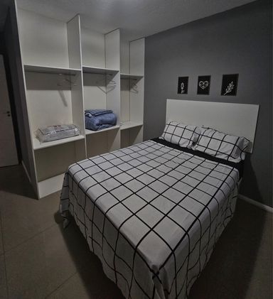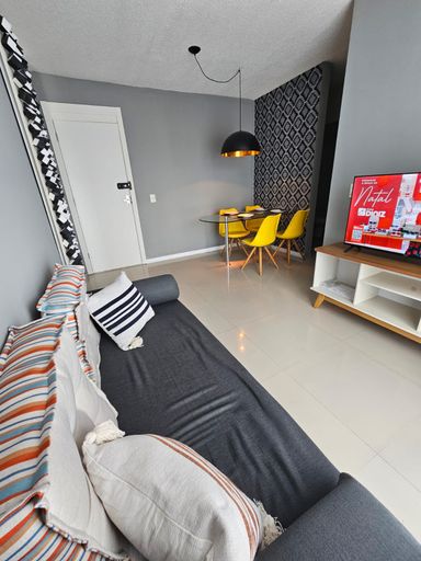 Excelente 2 quartos, Sala em 2 ambientes, banheiro social, cozinha com área de serviço. 1 vaga.