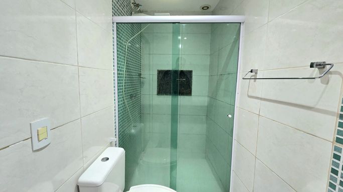 Sala em 2 ambientes, 2 quartos (sendo 1 pequeno), varanda, copa, cozinha, banheiro social com box blindex, banheiro de serviço.
