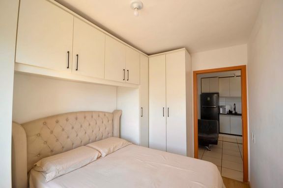 Apartamento a venda com 2 quartos, Sala com varanda, cozinha com área de serviço e 1 banheiro.