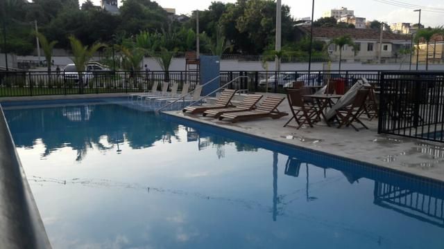 O condomínio conta com estrutura completa de lazer: piscina, academia, churrasqueira, salão de festas, playground e portaria 24h, oferecendo segurança e qualidade de vida para toda a família.