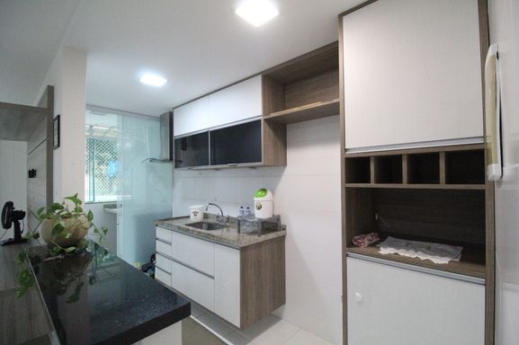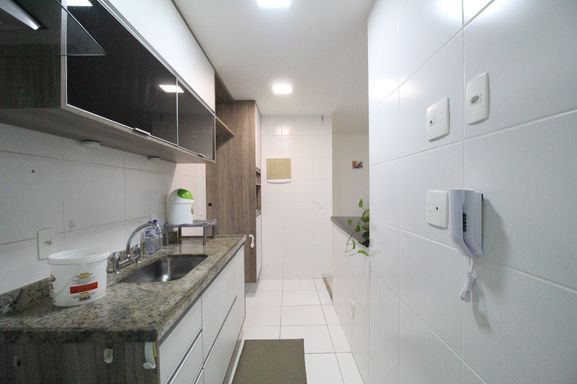 Apartamento de 71m² com 2 quartos, sendo 1 suite, ampla sala, cozinha, area de serviço e varanda.