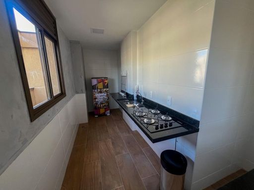 . Bancada gourmet com pia na varanda com ponto de gás para churrasqueira a gas