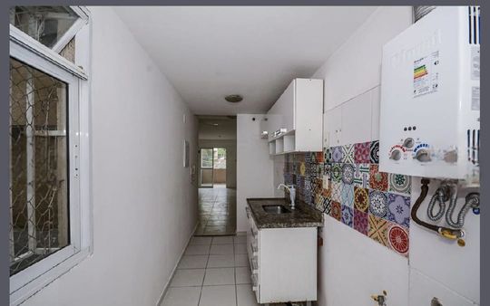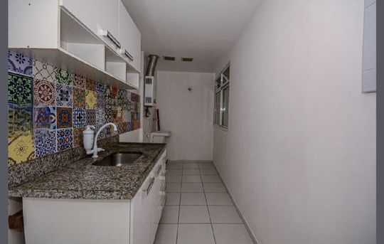 Ampla sala com varanda, 2 quartos sendo 1 suíte, cozinha com área de serviço e banheiro social.