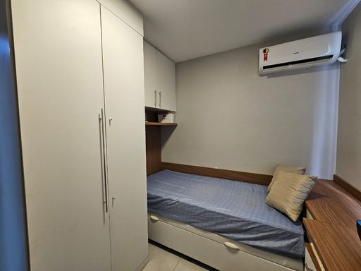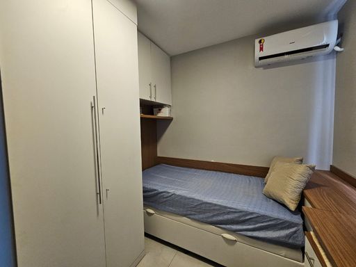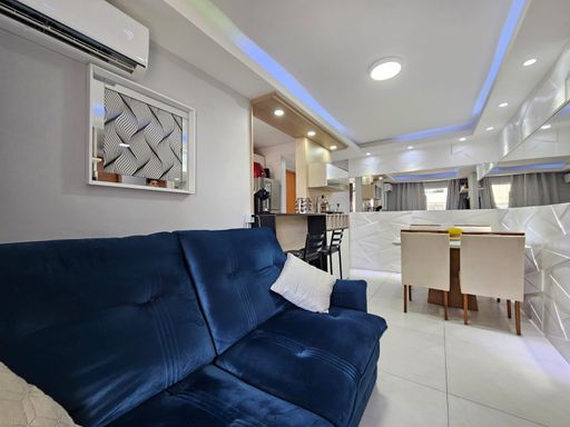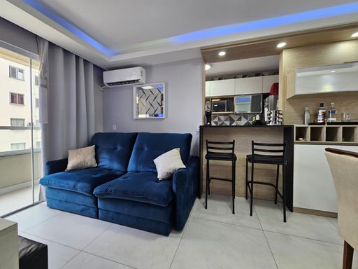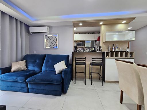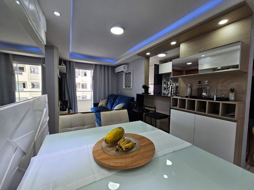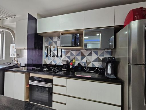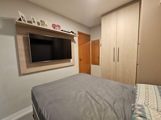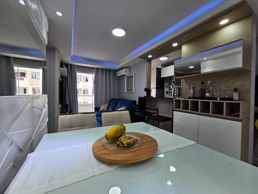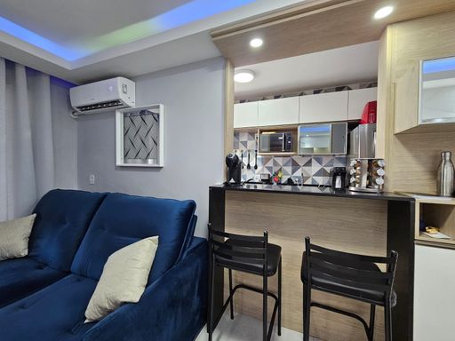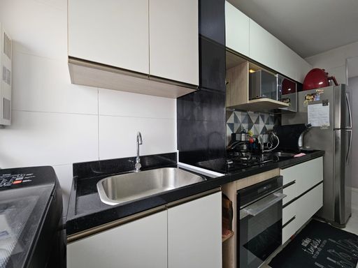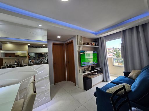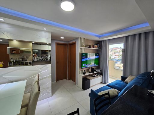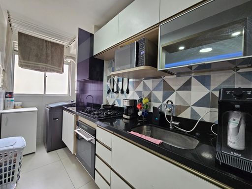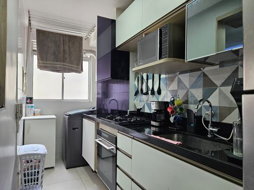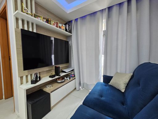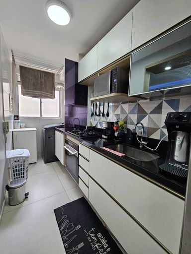 Apartamento de 47m² com 2 quartos, ampla sala, banheiro, cozinha, area de serviço e varanda
