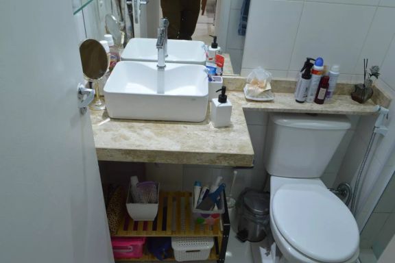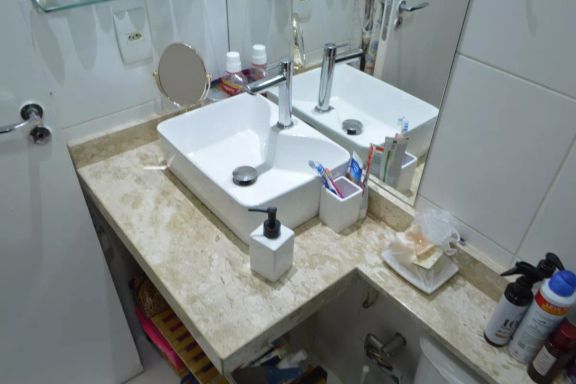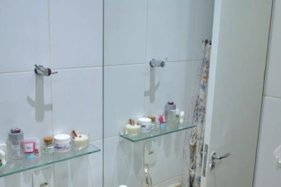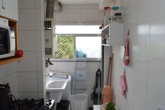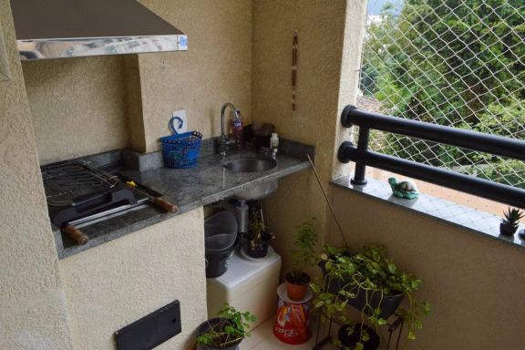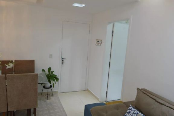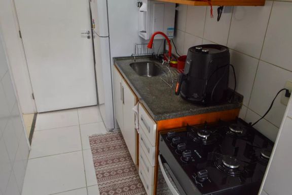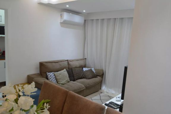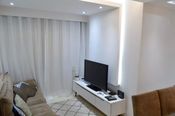 Sala em 2 ambientes com acesso a varanda gourmet, 2 quartos sendo 1 suíte, cozinha com área de serviço e banheiro social.
