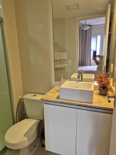 Todo o apartamento em porcelanato, bem arejado, silencioso e 02 splits nos quartos.