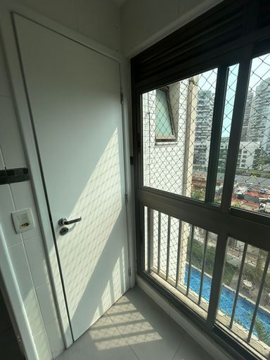 4 quartos c/ 2 suítes( armários), varanda c/ cortina de vidro. ampla sala, cozinha planejada, dependência empregada, área serviço, 2 vagas na escritura, , ar condicionado.