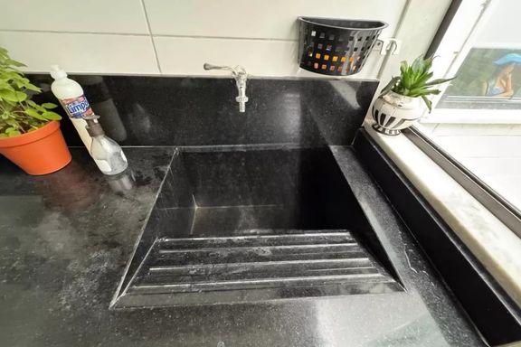 Área de serviço destacada da cozinha também planejada e muito bem ventilada.
